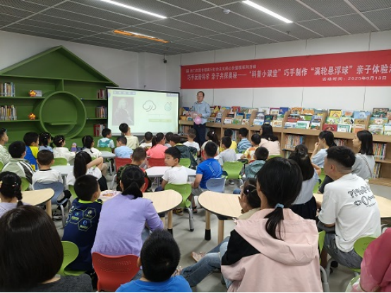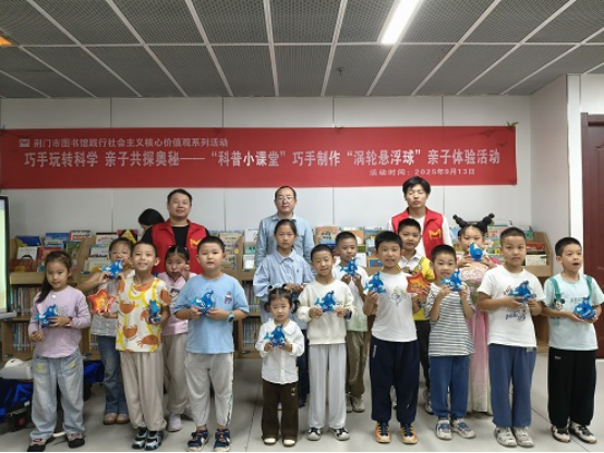 9月13日,荆门市图书馆在1A层少儿阅览室举办“科普小课堂”之“涡轮悬浮球”亲子制作活动,本次活动特邀荆门市探梦科技培训部主管郭亮波主讲,吸引了60余组家庭参与。大家在欢乐的氛围中共同探索科学奥秘,度过了一段充实而有趣的亲子时光。