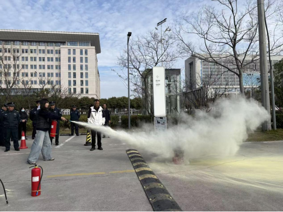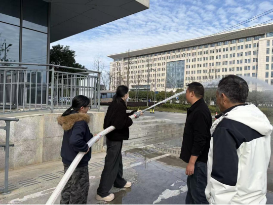 在消防应急演练模拟中,教官示范了灭火器使用和消防水带安装知识。大家严格按照规范流程,熟练完成灭火器操作、消防水带安装及模拟灭火等动作,整个演练过程紧张有序。