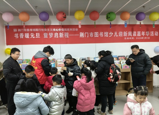 2026年1月1日上午,荆门市图书馆少儿阅览室内暖意融融、笑语盈盈,“书香暖元旦 童梦启新程”少儿迎新阅读嘉年华活动温馨举行。30组亲子家庭齐聚一堂,在书香中共迎新年,开启了一段充满温暖与希望的阅读之旅。