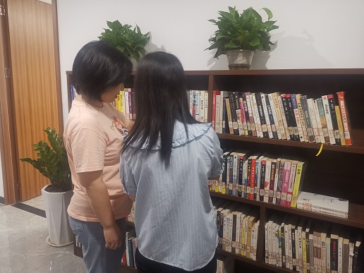 工作人员指导管理员上架图书