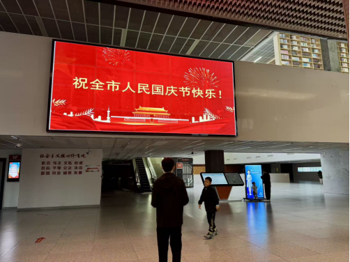 同时,我馆在一楼大厅、阅览区域等醒目位置规范悬挂国旗,在馆正门处悬挂红色灯笼,在馆内电子数据显示屏滚动播放节日标语和宣传视频,将国庆、中秋的节日氛围拉满,为广大市民和读者营造庄严喜庆、安全舒适的阅读环境。