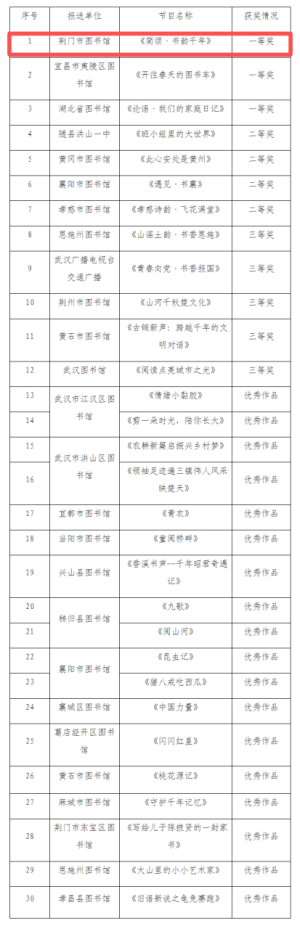 喜报!荆门市图书馆在长江读书节第二届“相约相读·阅读小剧场”作品评选活动中荣获一等奖