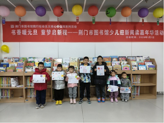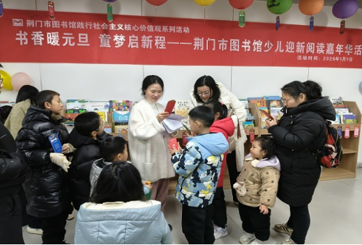 2026年1月1日上午,荆门市图书馆少儿阅览室内暖意融融、笑语盈盈,“书香暖元旦 童梦启新程”少儿迎新阅读嘉年华活动温馨举行。30组亲子家庭齐聚一堂,在书香中共迎新年,开启了一段充满温暖与希望的阅读之旅。